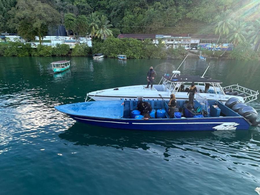 Esta lancha rápida detenida mide aproximadamente 40 pies de largo, no mantiene nombre ni matrícula, y está equipada con tres motores fuera de borda. Dentro de la misma, se ubicaron diez estañones con combustible.