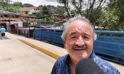 Francisco Murillo alcalde de Grecia se refiere a la inauguración del puente sobre el río Agualote, en Barrio Latino.