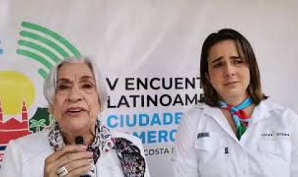 Sonia Murillo coordinadora nacional y María Angela Zamora, representante de CoopeVictoria se refieren al V Encuentro Latinoamericano Ciudades Por El Comercio Justo en el cantón de Grecia.