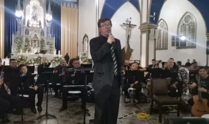 La Banda de Conciertos de Heredia junto al guitarrista y compositor de Grecia, Esteban Chaves y las cantantes Elsa Castro y Eugenia Rodríguez.