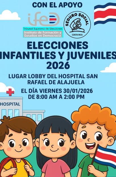 La jornada se llevará a cabo en el lobby del hospital de Alajuela, en horario de 8:00 a.m. a 2:00 p.m., y permitirá a niños y jóvenes vivir de cerca un proceso democrático.