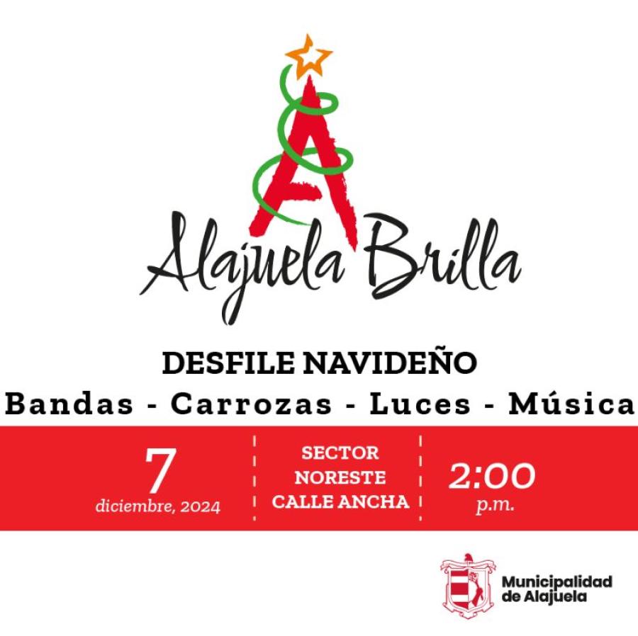 El alcalde municipal de Alajuela, Roberto Thompson dio a conocer a la comunidad nacional que el desfile “Alajuela Brilla 2024”, el evento más esperado del año para los alajuelenses, se realizará el sábado 7 de diciembre y contará con la participación de bandas de todo el país, espectaculares carrozas, así como invitados especiales que recorrerán las principales vías del casco central provocando una experiencia mágica navideña inolvidable.