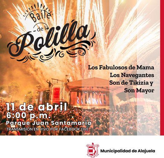 Parte de esta celebración tradicional para la conmemoración de la gesta heroica es el Baile de la Polilla, que este año iniciará las 6 p.m. en el parque Juan Santamaría. El baile será amenizado en esta ocasión por la agrupación alajuelense “Los Fabulosos de Mama”, además de los grupos musicales “Los Navegantes”, “Son de Tikizia” y la Orquesta “Son Mayor”.
