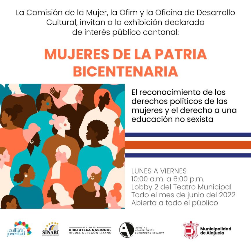 Con motivo del reconocimiento de los derechos políticos de las mujeres en Costa Rica y el derecho a una educación no sexista, se exhibirá en el Teatro Municipal de Alajuela la colección de la Benemérita Biblioteca Nacional “Mujeres de la Patria Bicentenaria” declarada de interés público por el Concejo Municipal de Alajuela tras el acuerdo MA-SCM-1031-2022, del pasado 24 de mayo de 2022.
