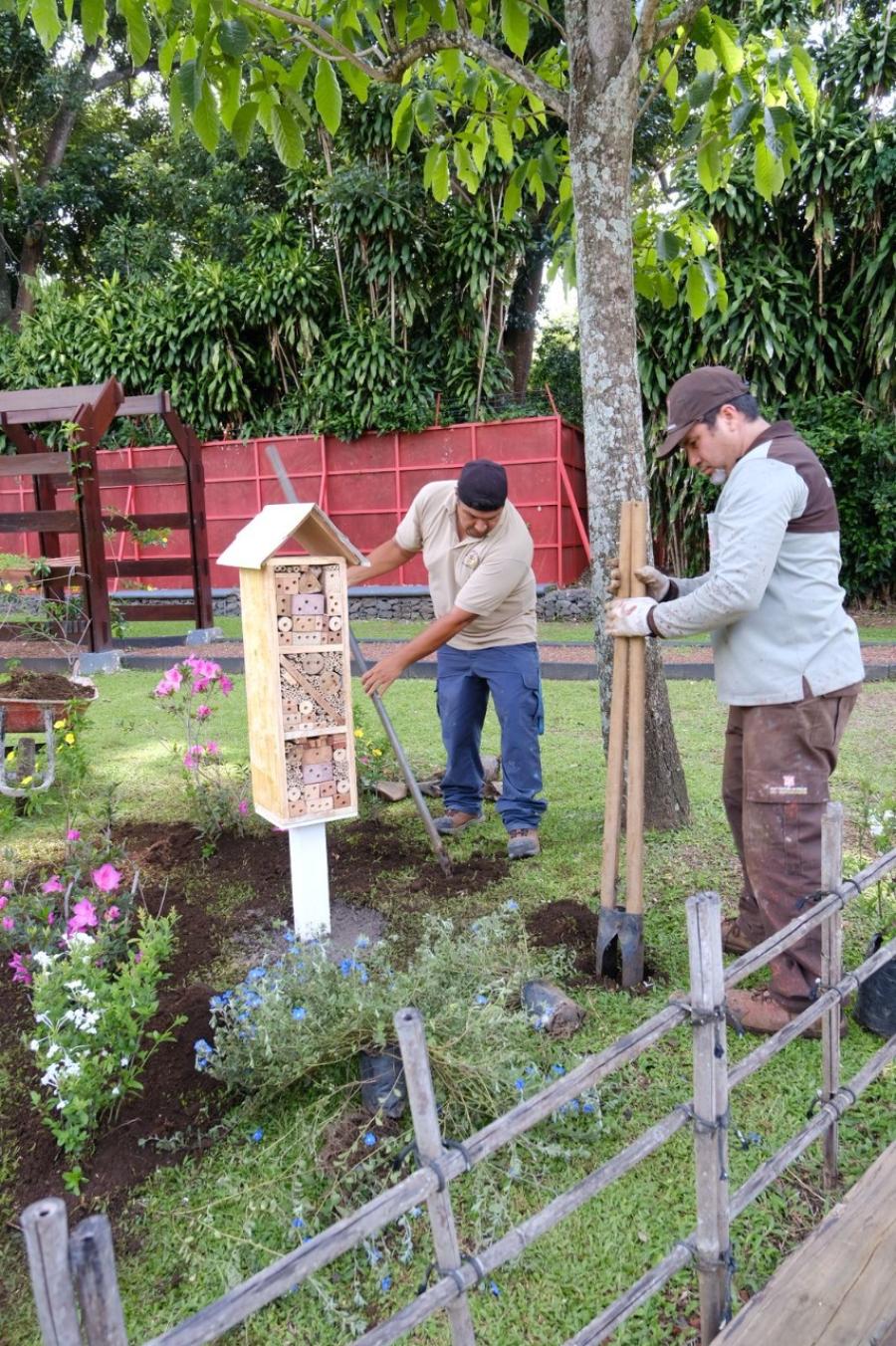 En una primera etapa del proyecto se realizó la siembra de flora melífera para que el sitio donde se colocará el hotel sea atractivo y apto para estos y otros importantes polinizadores.