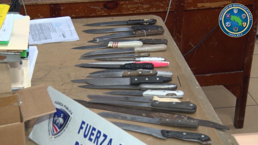 La directora regional de la Fuerza Pública en Heredia, comisionada Katia Chavarría, comentó que “una de las funciones que más se trabaja policialmente hablando en delitos contra la vida es la incautación de armas, entre las que están las armas blancas. Por ello, nos dedicamos a sacarlas de las calles cuando hacemos operativos. La mayoría las poseen habitantes de la calle quienes las usan para protegerse o cometer actos ilícitos”.