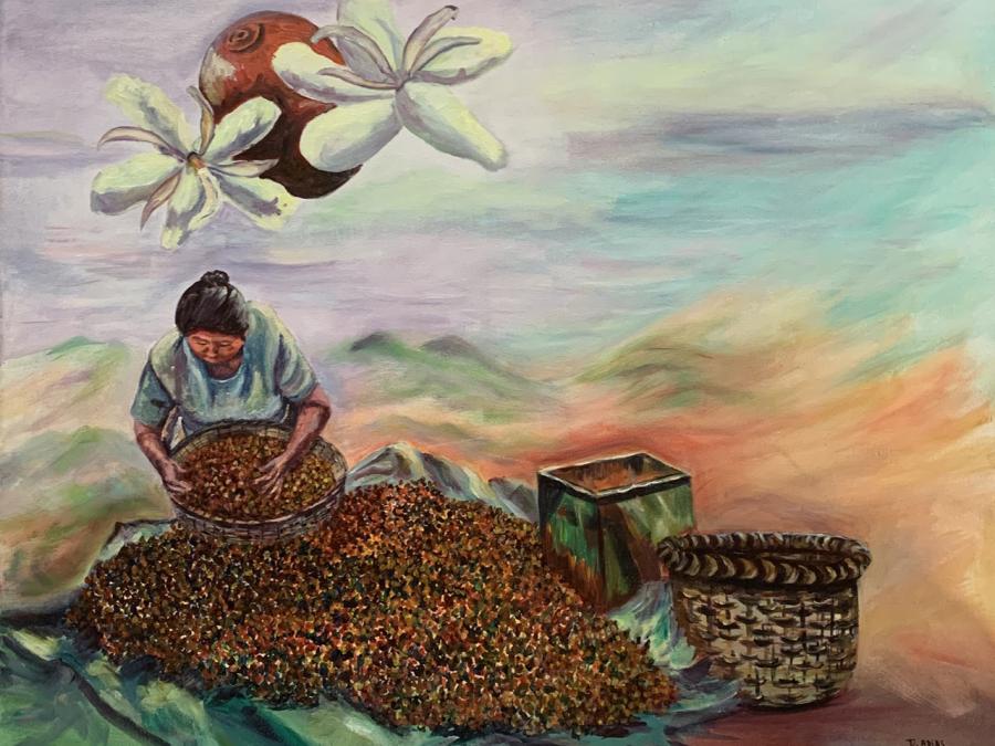 “Mis cinco obras representan a mi madre, una mujer luchadora y campeona, que trabajó desde muy pequeña en actividades duras como jalar carretas de caña y coger café, todo para mantener a sus 12 hijos. Nos brindó bases como la honestidad, la honradez y el amor al prójimo”, expresó Damaris Arias Valverde, una de las artistas.