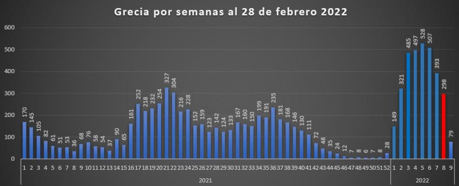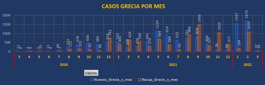También logramos observar que a nivel nacional el mes de febrero disminuyen los casos, pero en Grecia si se presentó todavía un leve aumento de casos entre lo que fue enero y el mes de febrero de 126 casos.