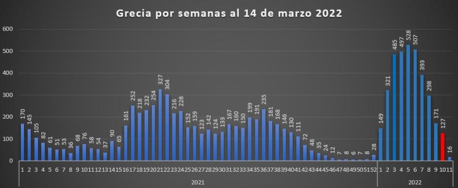 Casos por Covid-19 en Grecia descienden esta semana en un 25.73%