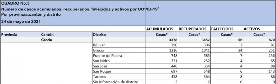 Logramos ver a nivel nacional una ligera disminución respecto a la anterior, en la que esperamos sea a partir de esta, una nueva constante en la baja con los pronósticos optimistas que han mencionado los especialistas. Caso contrario sucedió con Grecia, que para esta semana mostró nuevamente un aumento, pero que a su vez ha sido una constante de las últimas 4 semanas. Debemos a nivel de cantón de redoblar los esfuerzos ya que el mismo Hospital San Francisco de Asís sigue con internamientos al borde del colapso en su capacidad.