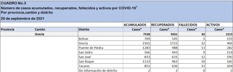 En el cantón de Grecia esta semana tenemos una disminución en casos alcanzados en donde se llega a los 181 casos nuevos respecto a los 235 casos reportados la semana anterior, marcando 54 casos menos para esta semana. En el caso de los recuperados para esta semana Grecia logra alcanzar 246 casos.