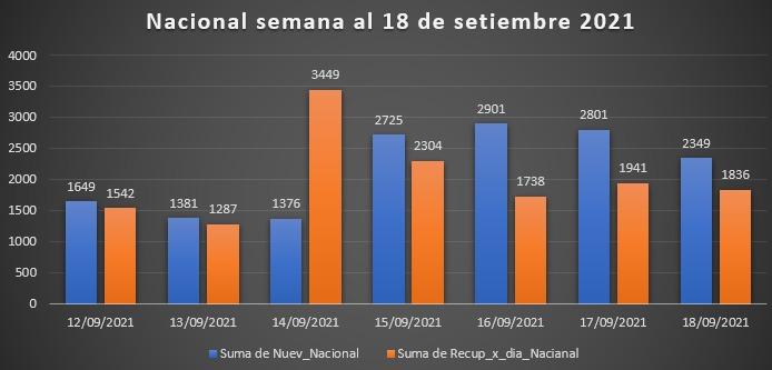 Informe estadístico para la semana de información del Ministerio de Salud comprendida entre el domingo 12 de setiembre y el sábado 18 de setiembre de 2021.