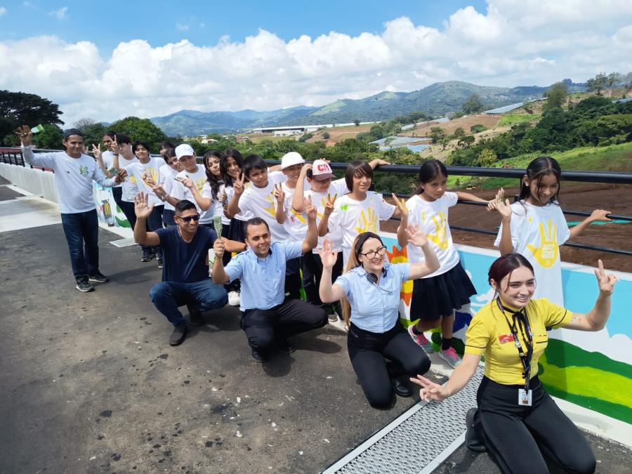 El mural fue elaborado en conjunto con el artista nacional José Fernández, quien impartió una charla sobre teoría del color y facilitó un espacio creativo en el que los niños y niñas plasmaron mensajes que promueven la cultura del reciclaje y la economía circular.