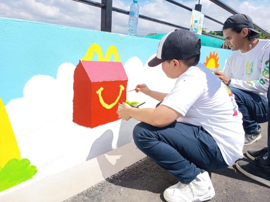 Marianela Ureña, gerente de comunicaciones de Arcos Dorados explicó que, el mural es un ejemplo de esas iniciativas sustentables como por ejemplo, los paneles solares, los bicicleteros, los basureros con separación de residuos y los empaques que provienen de fuentes certificadas, “queremos que los niños dejen plasmado lo que hay en el restaurante a través del arte”.