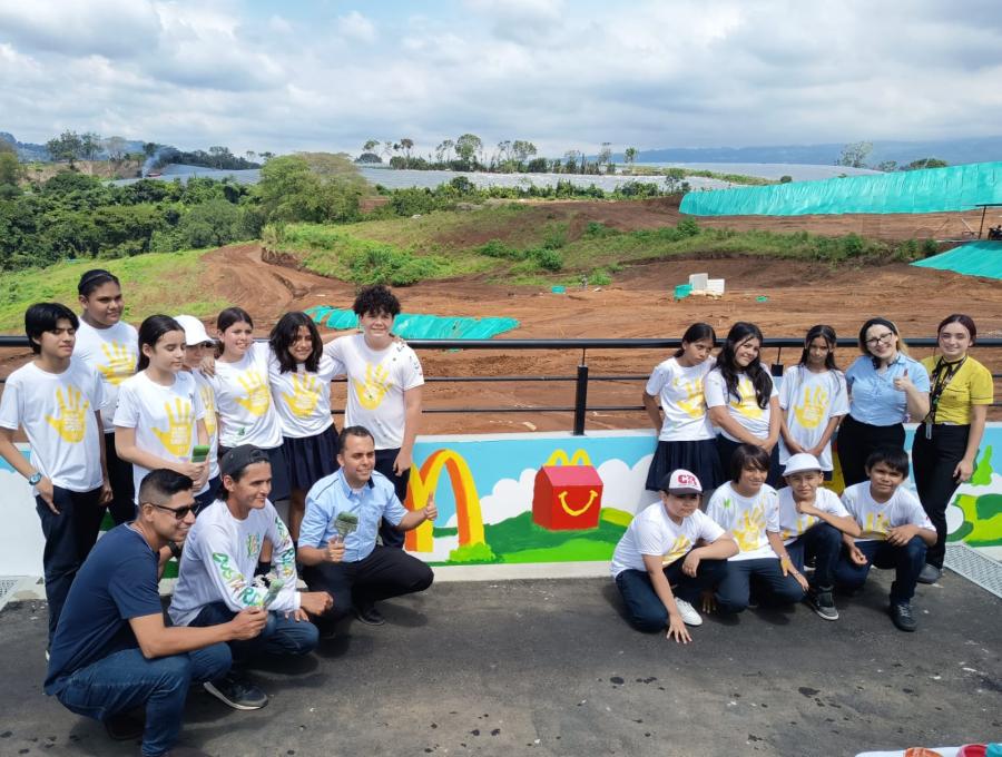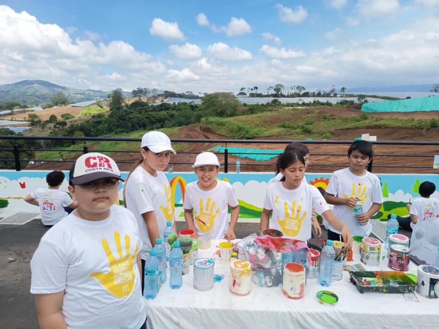 Quince estudiantes de quinto y sexto año de la escuela José Manuel Peralta, de la comunidad de Altos Peralta, fueron los encargados de pintar el mural del nuevo McDonald´s que se ubica en el cantón de Grecia.