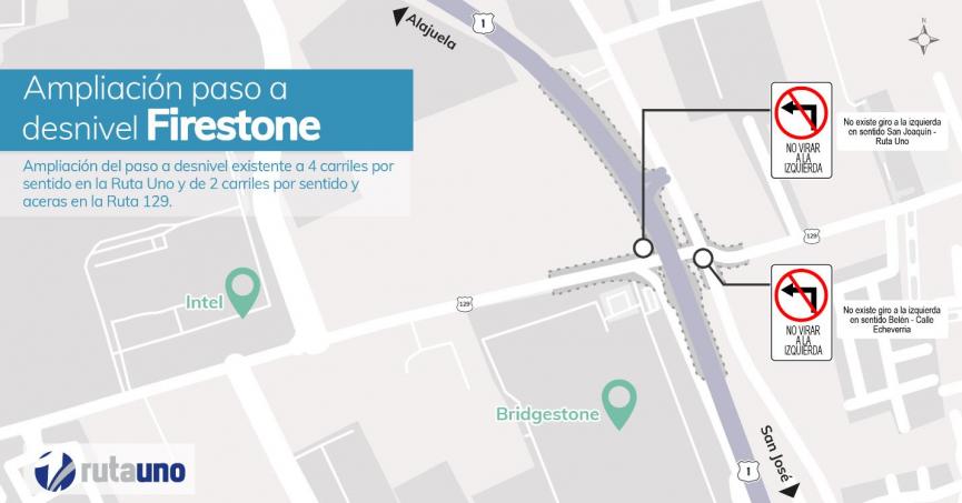 Asimismo, en abril entró en funcionamiento la ampliación a 8 carriles (4 por sentido de circulación) de la Ruta Uno en el sector del paso a desnivel en Firestone, quedando únicamente labores concernientes a la RN129, que conecta San Joaquín de Flores con Belén de Heredia.