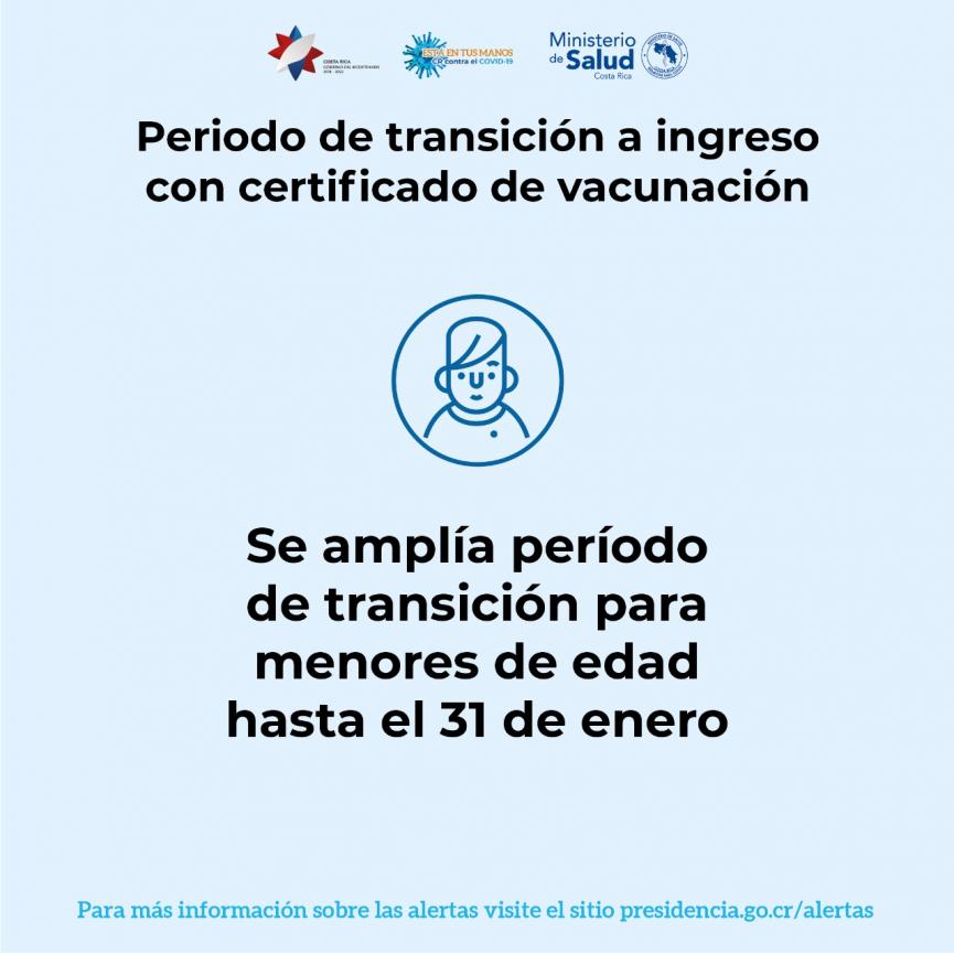 Las autoridades anunciaron que las personas menores de edad, entre 12 y 17 años, no necesitarán presentar el certificado de vacunación hasta el 31 de enero. De esta manera, se  promueve el ingreso al país de familias turistas con menores de edad provenientes de países en los que la inmunización no es obligatoria o no ha alcanzado a menores de 18 años y se da más plazo a los nacionales para completar su esquema.
