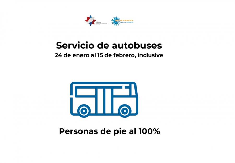 Con respecto al aforo de personas de pie en los buses contemplada en el protocolo del Consejo de Transporte Público (CTP), se aumentará el aforo a un 100%