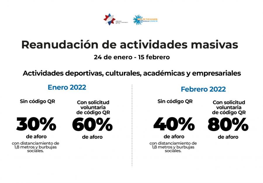 A partir del 1 de febrero estos eventos contarán con la autorización de elevar su aforo al 80% para los que soliciten voluntariamente el certificado (código QR) y a un 40% para los eventos que no lo verifiquen: