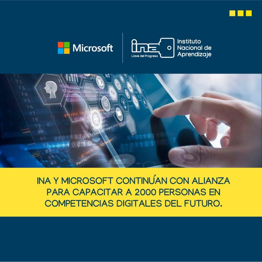 INA y Microsoft reafirman alianza para capacitar a 2000 personas en competencias digitales del futuro.