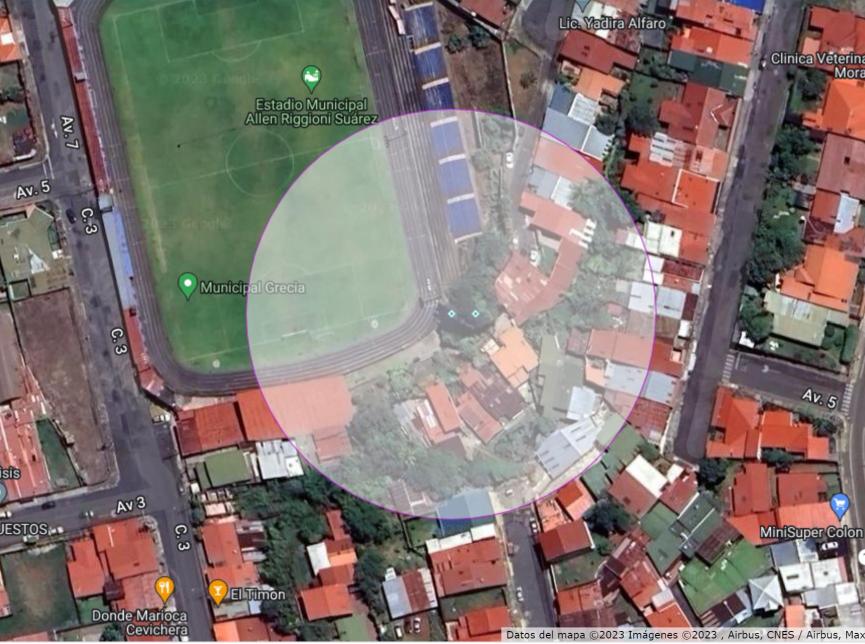 En tal caso, para evitar la clausura, sería mejor quitar la electricidad del estadio y colocar lámparas solares para que en la madrugada y en las noches las personas puedan acceder a la pista de atletismo y a la plaza. La parte del gimnasio se le puede hacer otra acometida eléctrica y, si las oficinas del CCDR de Grecia no cumple por sistema eléctrico, que trasladen sus oficinas mientras se hace una nueva instalación. Como se puede ver en el área marcada para protección, si se considera el Reglamento para el Control Nacional de Fraccionamientos se pueden hacer arreglos que permitirían hacer las reparaciones que sean necesarias a la mayor parte del estadio.