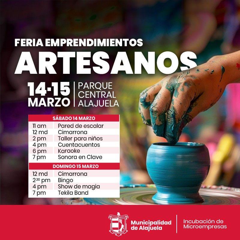 La Municipalidad de Alajuela celebrará el Día del Artesano Costarricense con la realización de la Feria de Emprendimientos Artesanos los días 14 y 15 de marzo en el Parque Central de Alajuela, como un reconocimiento a la labor, creatividad y aporte cultural de los artesanos del cantón.