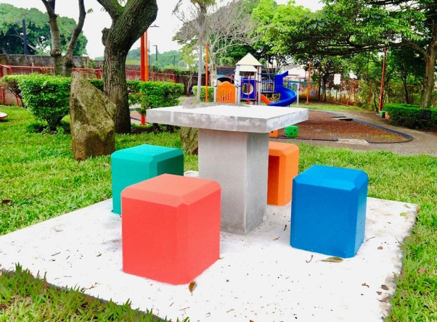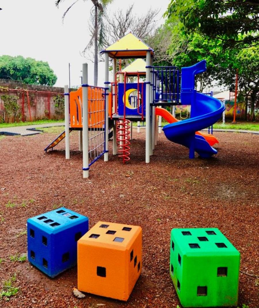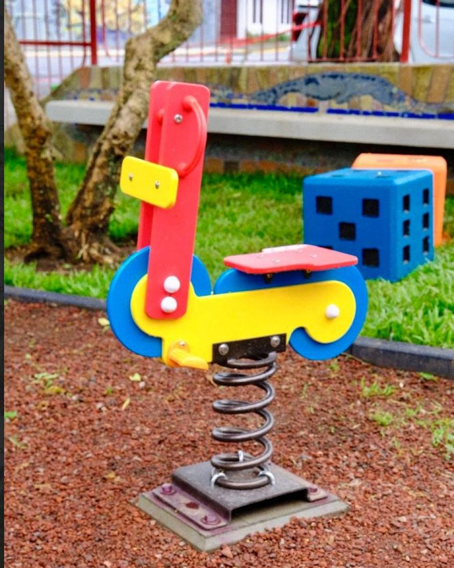 Con este enfoque de mejorar la infraestructura de los sitios públicos de todo el cantón, dentro de las renovaciones realizadas en este parquecito durante la primera etapa, está el cambio de todo el sistema eléctrico y de iluminación, renovación de áreas verdes, recuperación de elementos como bancas, parada de bus, el anfiteatro, bebederos, superficies, y la caseta de guarda de seguridad, entre otros. Además, se incorporaron juegos infantiles nuevos, se construyeron mesas de concreto, se instalaron hamacas, juegos de resorte y se recuperó la totalidad del parque con mucho color.