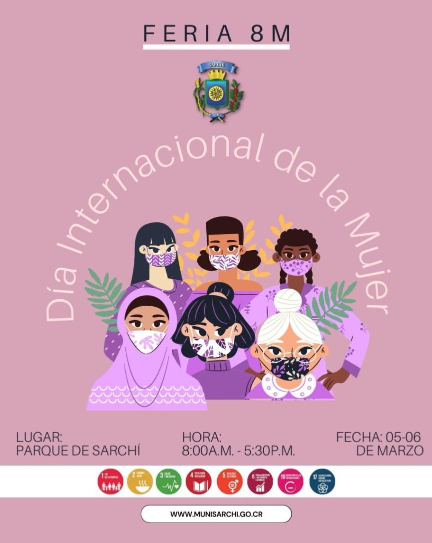 La Municipalidad de Sarchí realizará por cuarto año la Feria del Día Internacional de la Mujer, la cual se llevará a cabo en el Parque Central del cantón los días sábado 05 y domingo 06 de marzo desde las 8:00 a.m. hasta las 5:30 p.m.