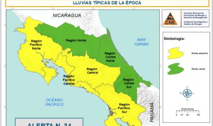 CNE declara Alerta Amarilla por lluvias en el Valle Central