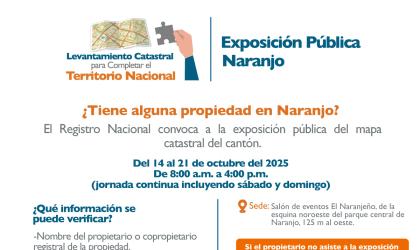 Registro Nacional realizará exposición pública del mapa catastral en Naranjo