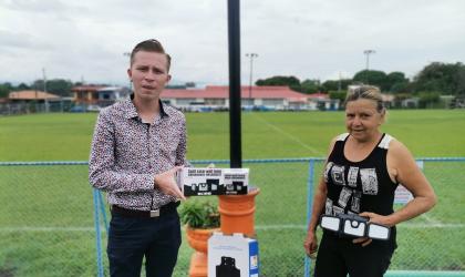 Vecinos donan lámparas LED para iluminar plaza de fútbol