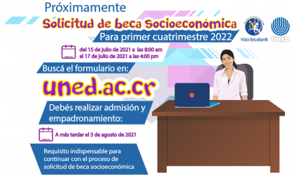 UNED abrirá este mes periodo de solicitud de beca por situación socioeconómica para primer cuatrimestre 2022