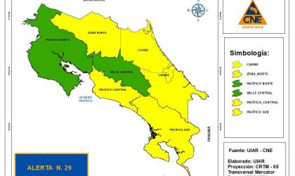 CNE declara alerta amarilla y verde en el país por lluvias