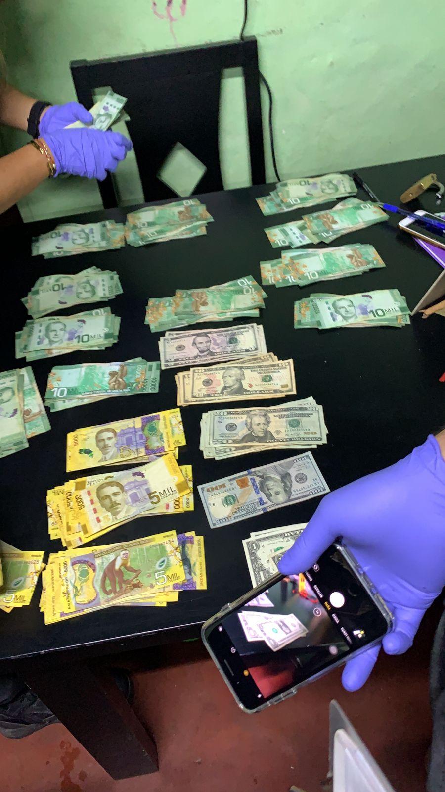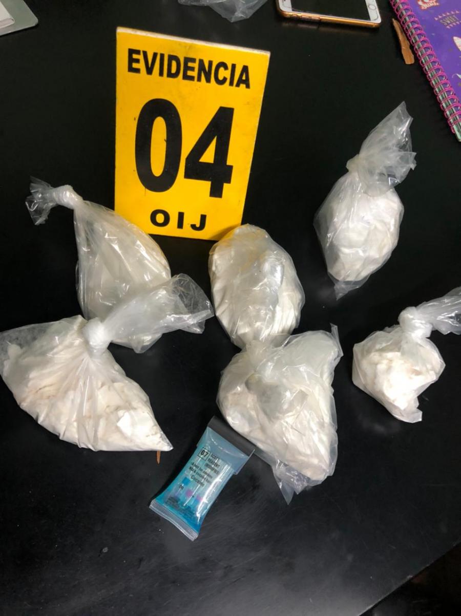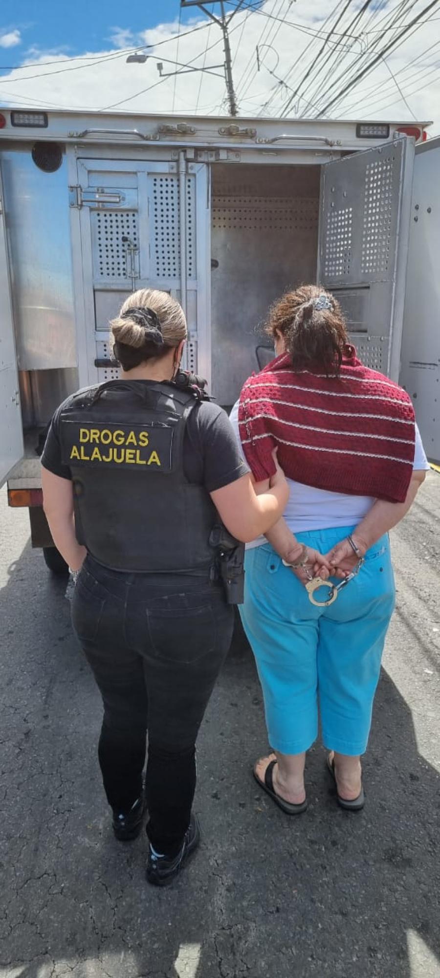 Se allanó la casa de la mujer ubicada en el centro de Alajuela, donde además de su detención se logró el decomiso de más de 5 millones de colones en efectivo un kilo de aparente cocaína, varios puchos de marihuana y filtros con aceite de la misma droga, así como utensilios de los utilizados para preparar este tipo de droga.