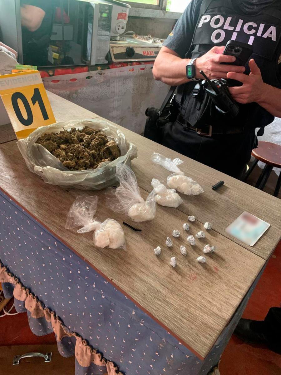 Tras realizar diferentes acciones policiales de investigación, se pudo corroborar que ambos masculinos se dedicaban a dicha actividad, por lo que se procedió a realizar la respectiva solicitud del allanamiento, y esta mañana se hizo el registro de los inmueble donde se logró ubicar evidencia de relevancia para la investigación, como una cantidad importante de aparente droga de tipo cocaína, marihuana y crack, además, de dos armas de fuego y un cuadraciclo con alteración de señas y marcas.