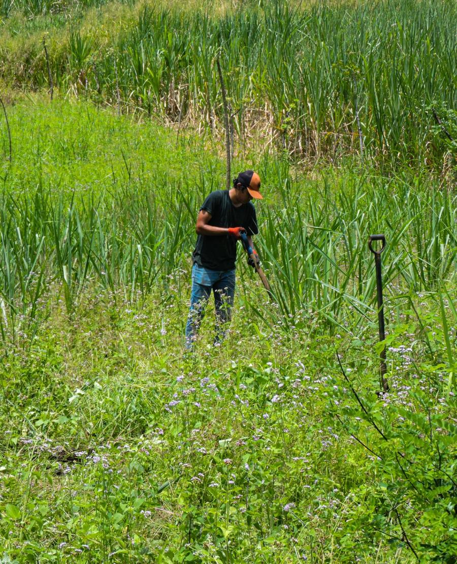 Diferentes organizaciones ambientales del cantón de Grecia se unieron para eliminar la maleza del proyecto de reforestación Hacienda Castilla, en la rivera derecha de la Quebrada Valverde.