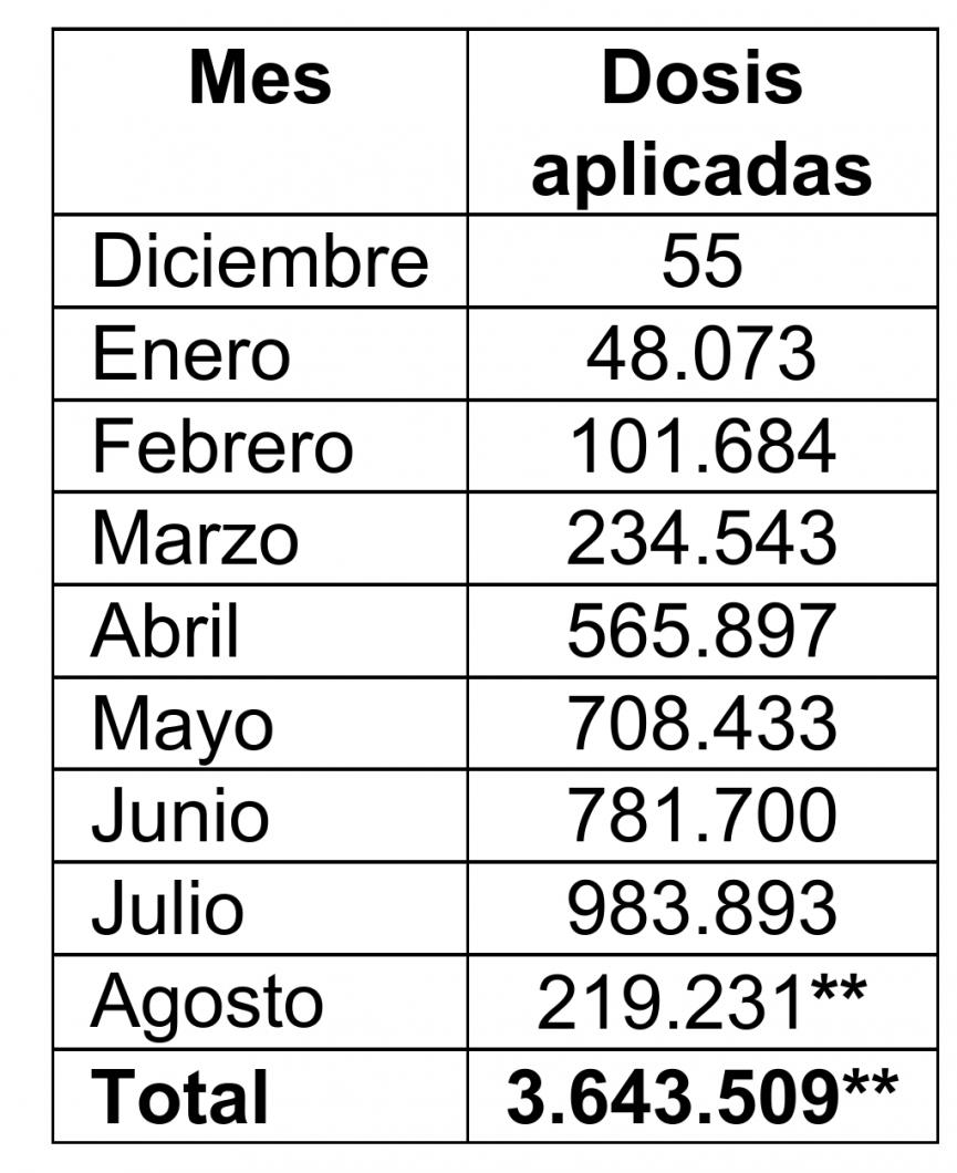 Asimismo, durante agosto se han aplicado 219.231 dosis. Ver cuadro detalle.