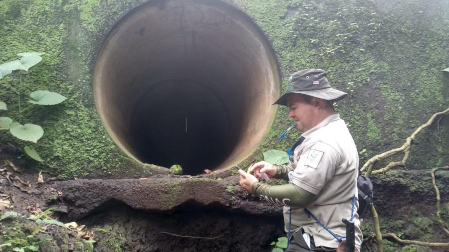 Agregó que mientras realizaban la inspección el pasado viernes, encontraron la huella de un felino bastante grande que está utilizando los pasos como alcantarillas y pasos de agua, para ir de un lado al otro.
