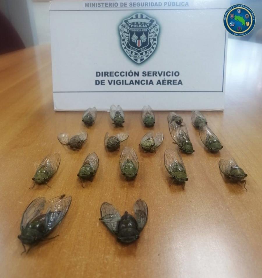 Así fue reportado por la Policía Aeroportuaria del SVA en el Aeropuerto Internacional Juan Santamaría en Alajuela, donde detectaron a una pasajera de nacionalidad estadounidense con 14 cigarras muertas ocultas entre sus pertenecías, así como semillas y brotes de plantas.