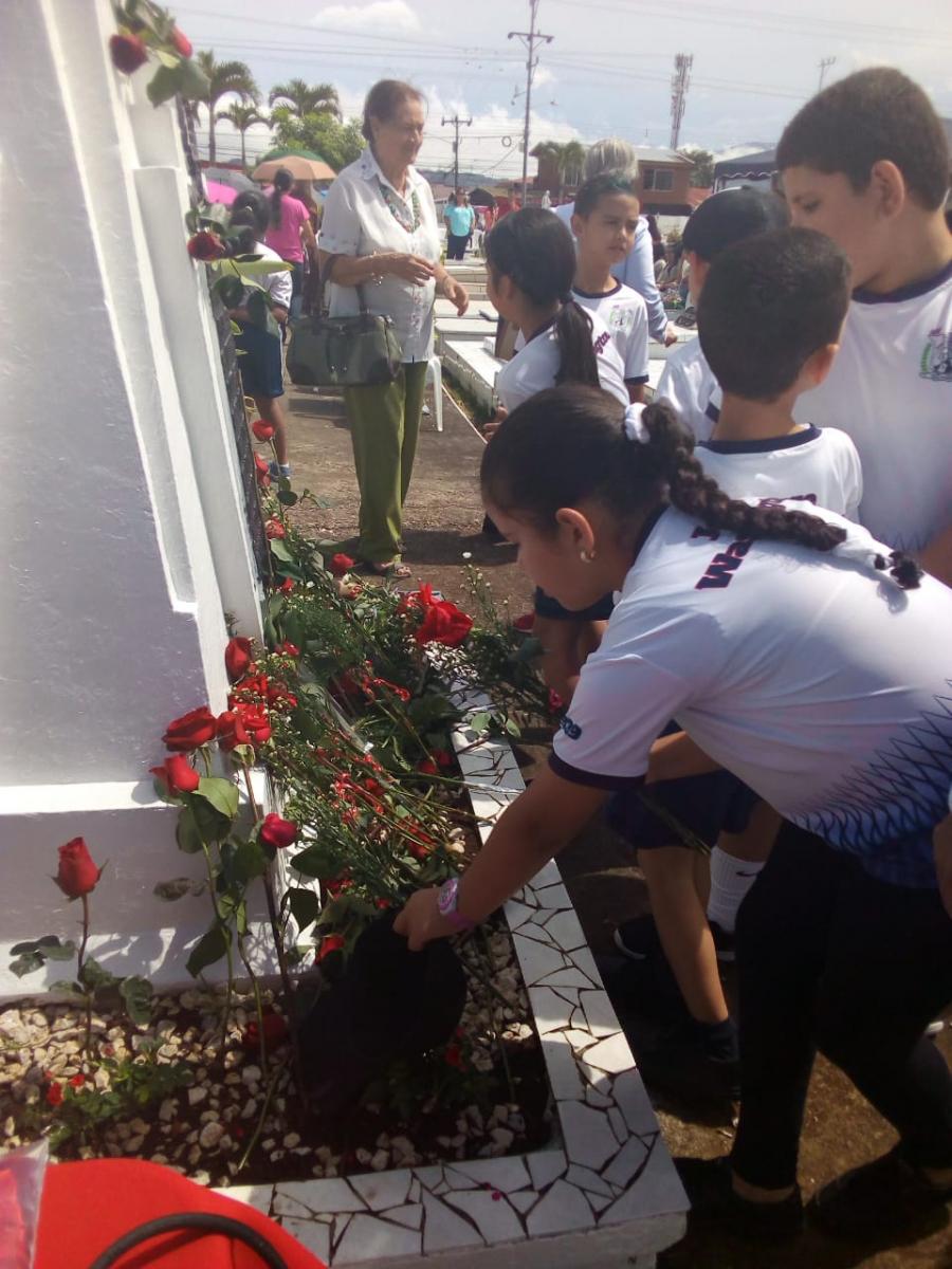 Luego de la entrega de rosas el acto continuará en el monumento al poeta, ubicado 100 metros este de la entrada al cementerio, donde se develará una placa en recuerdo y homenaje al premio más importante recibido por el poeta: la Flor Natural, obtenido en los Juegos Florales de Costa Rica en 1909, por su Poema al agua.