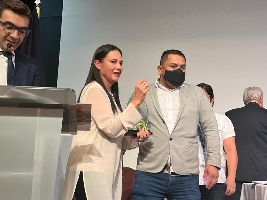 En medio de un efusivo aplauso de los asistentes Eduardo Mora Castrillo, asistente de pacientes recibió el reconocimiento en manos de doña Maritza Hernández.