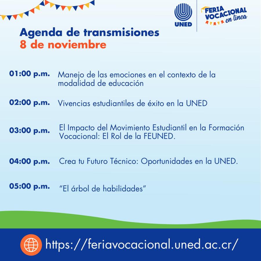- 1:00 p.m. Manejo de las emociones en el contexto de la modalidad de educación. 2:00 p.m. Vivencias estudiantiles de éxito en la UNED.