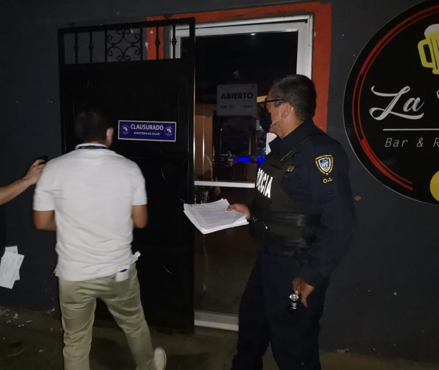Fuerza Pública y Ministerio de Salud clausuran bar/restaurante en San Roque