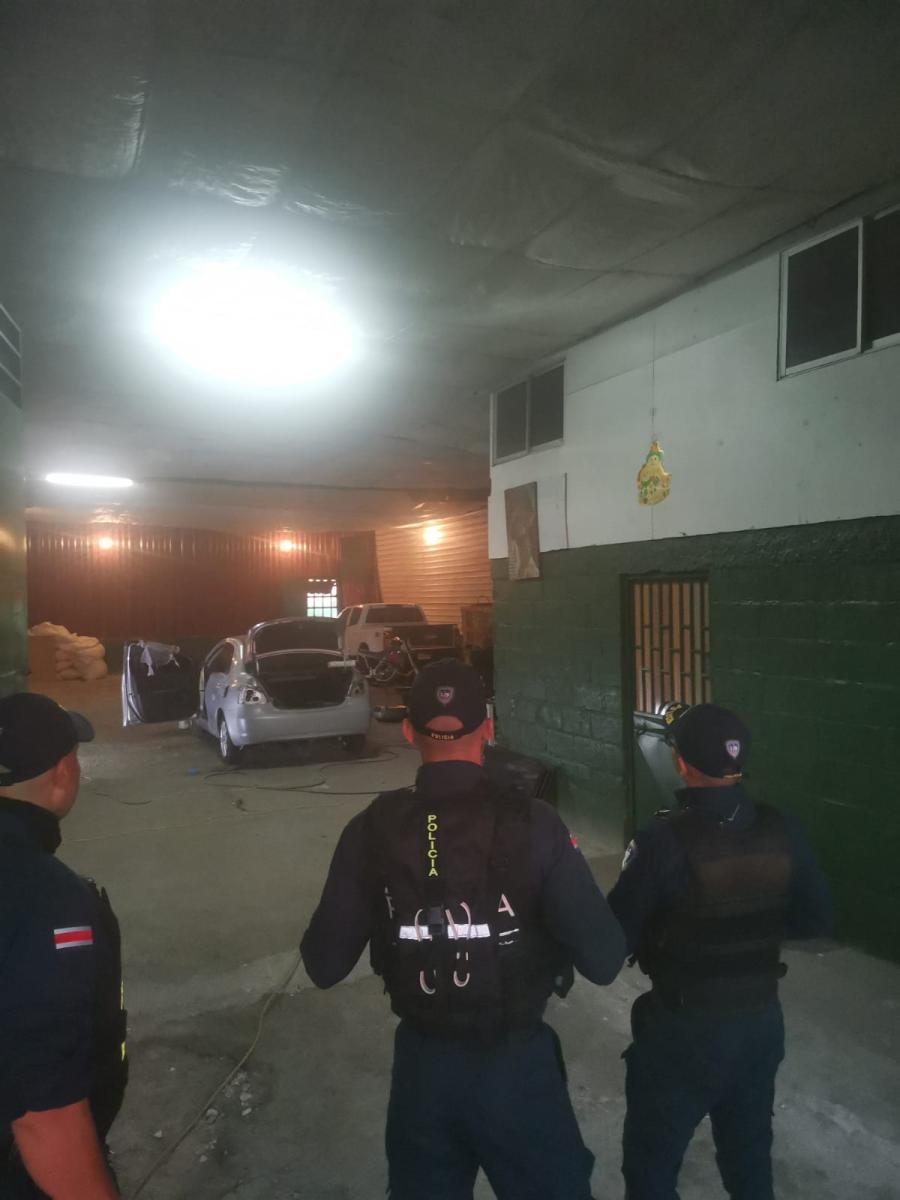 Fuerza Pública y OIJ ubican vehículo robado en taller en la Garita