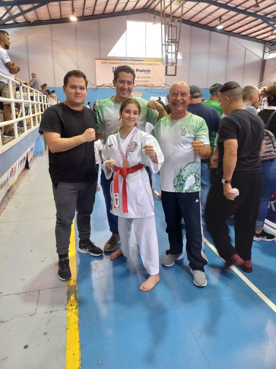 Los atletas griegos, Braulio Vega, Valentina Navarro y Paulina Arias lograron medallas de bronce en el Open Costa Rica de Karate 2023.