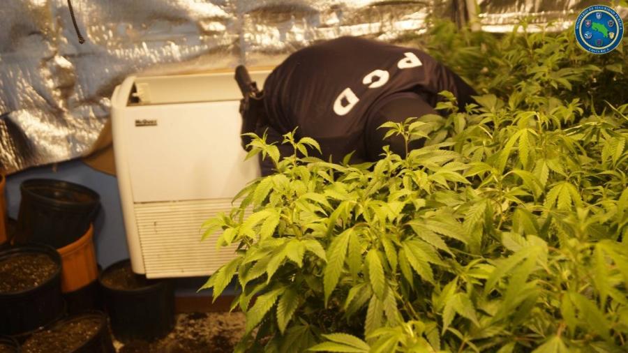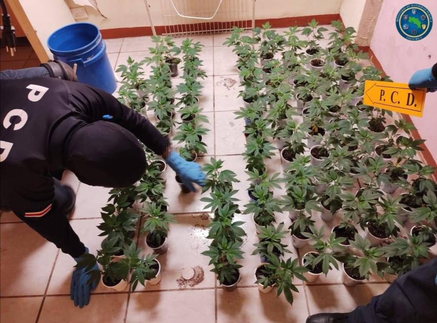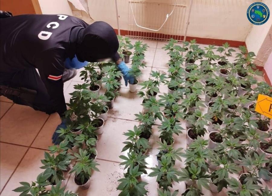 En Barva de Heredia y Alajuela se localizaban dichos inmuebles usados por el narco líder, estos fueron allanados de forma simultánea por los oficiales de la PCD, quienes decomisaron 9.857 gramos de marihuana y 424 plantas de marihuana con una medición de los 14 centímetros a un metro de altura aproximadamente.