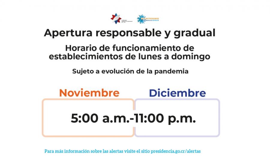 Los establecimientos con permiso sanitario de funcionamiento de atención al público, sujetos a horario, podrían abrir de lunes a domingo hasta las 11:00 p.m., según el horario de restricción vehicular.