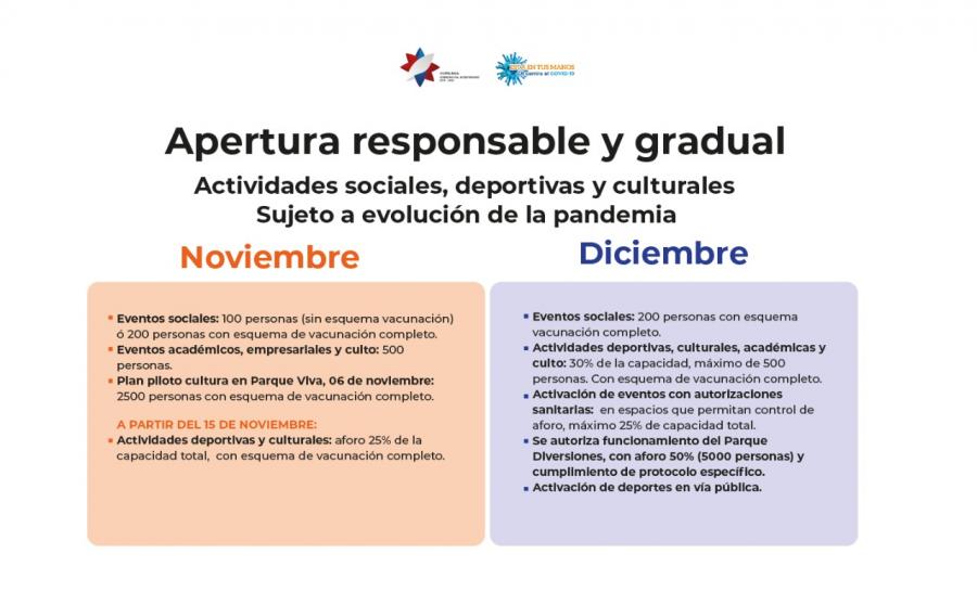 Según la evolución de la pandemia las actividades deportivas y culturales permitirán entre noviembre y diciembre un mayor ingreso de personas, privilegiando aforos con personas con el esquema de vacunación completo.