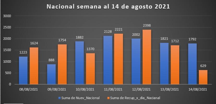 Informe estadístico para la semana de información del Ministerio de Salud comprendida entre el domingo 8 de agosto y el sábado 14 de agosto de 2021.