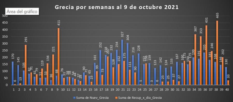Nos encontramos una disminución de los casos a nivel nacional por segunda semana consecutiva y para el cantón de Grecia por cuarta semana consecutiva. Es importante notar ya un poco más el efecto de las vacunas en la cantidad de infecciones, sobre todo que mayor cantidad de la población está teniendo ya las dos dosis. En apariencia se está produciendo el efecto esperado por los especialistas y matemáticos en donde se estima un escenario favorable – conservador. Queda esperar el comportamiento el resto del mes y noviembre para ver el efecto para el fin de año que se avecina.